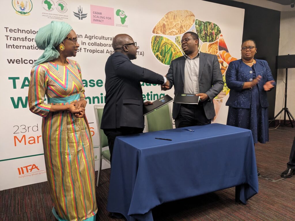 The agreement was signed between Rwanda’s Ministry of Agriculture and Animal Resources and IITA under the Technologies for African Agricultural Transformation (TAAT Phase II) program. The initiative focuses on scaling up proven agricultural technologies that help farmers adapt to climate change while improving overall crop yields.